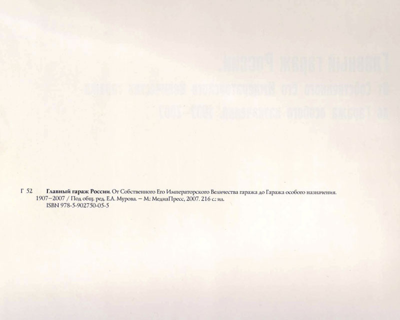 Книга в продаже - "Главный гараж России от Собственного Его Императорского Величества гаража до Гаража особого назначения. 1907-2007"